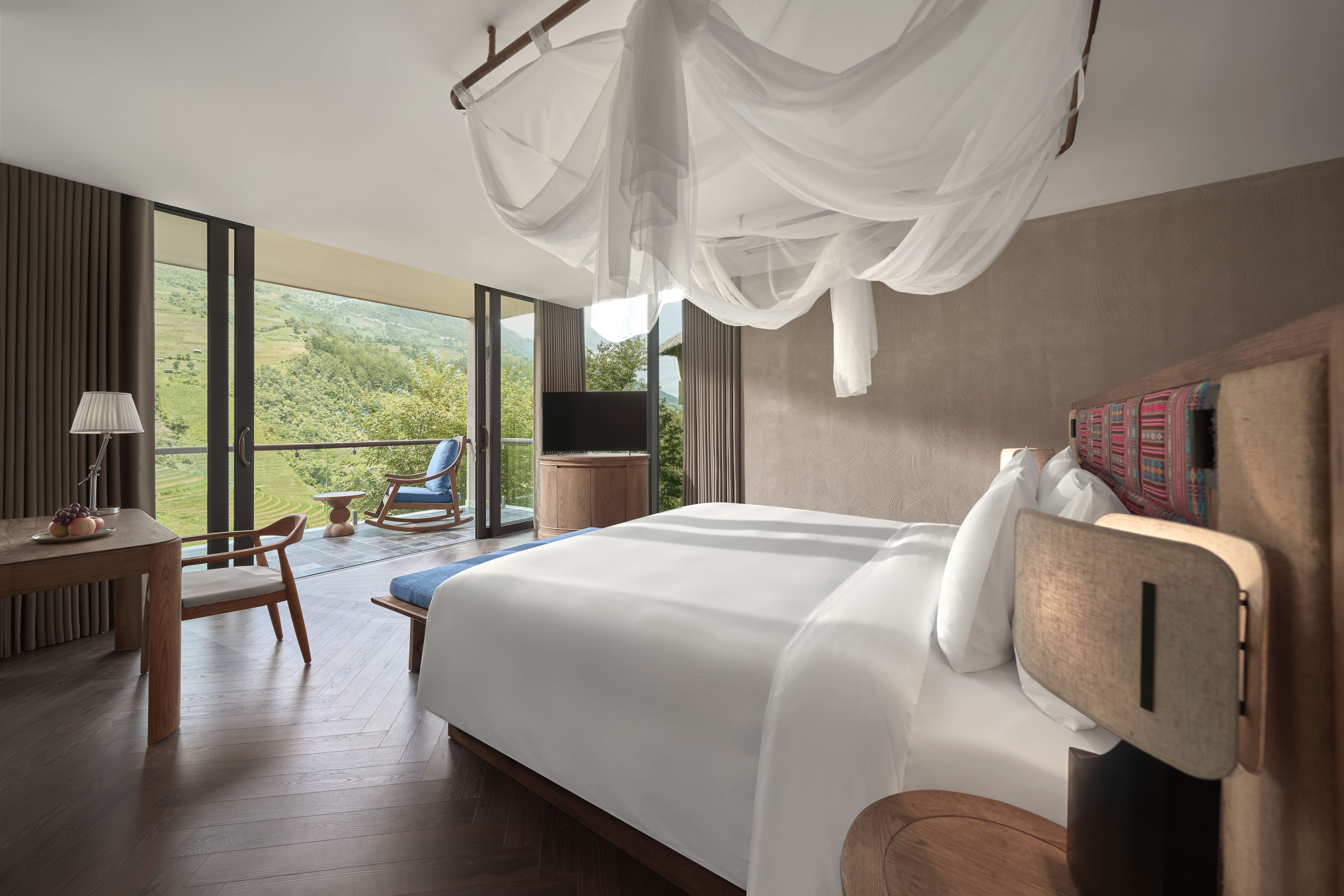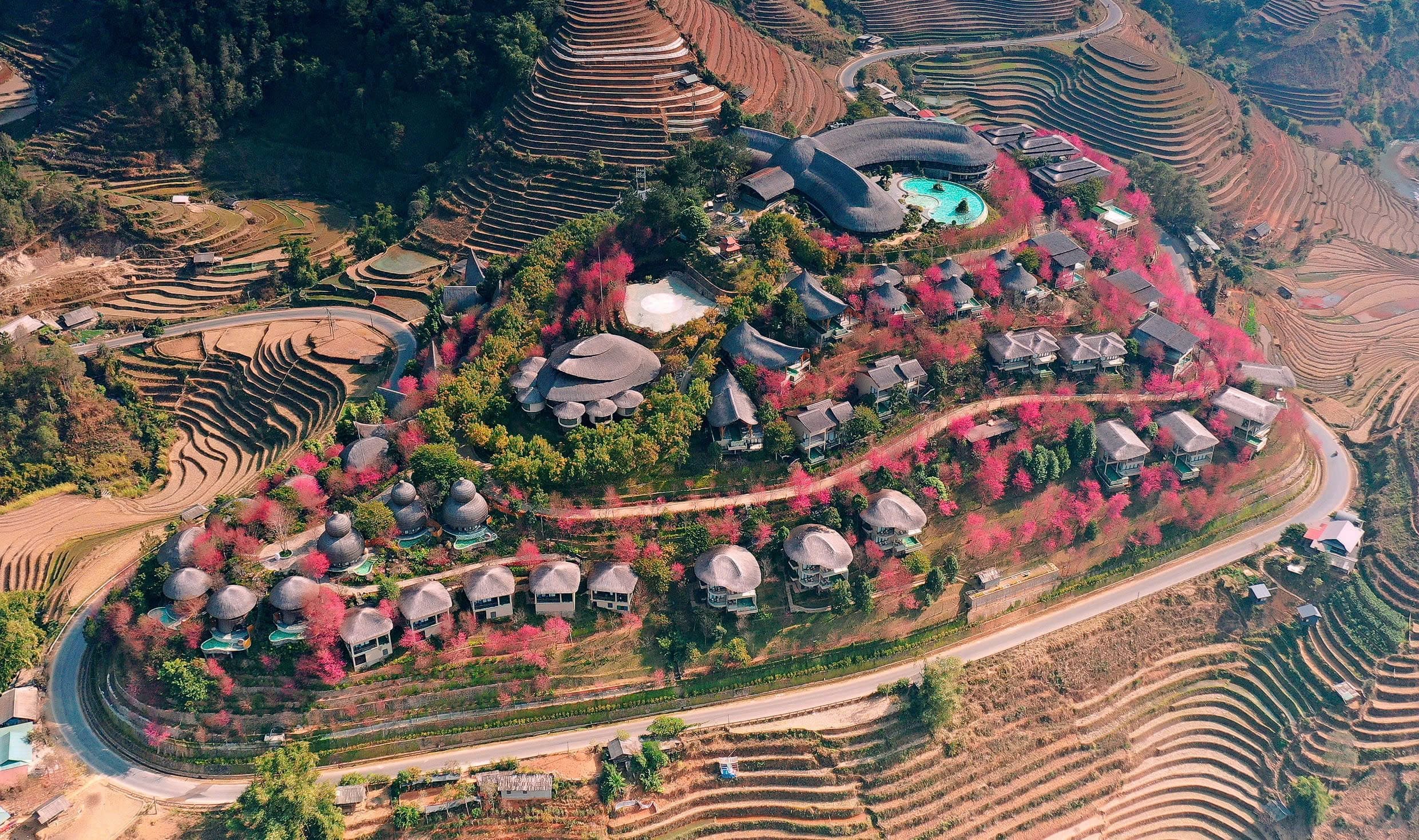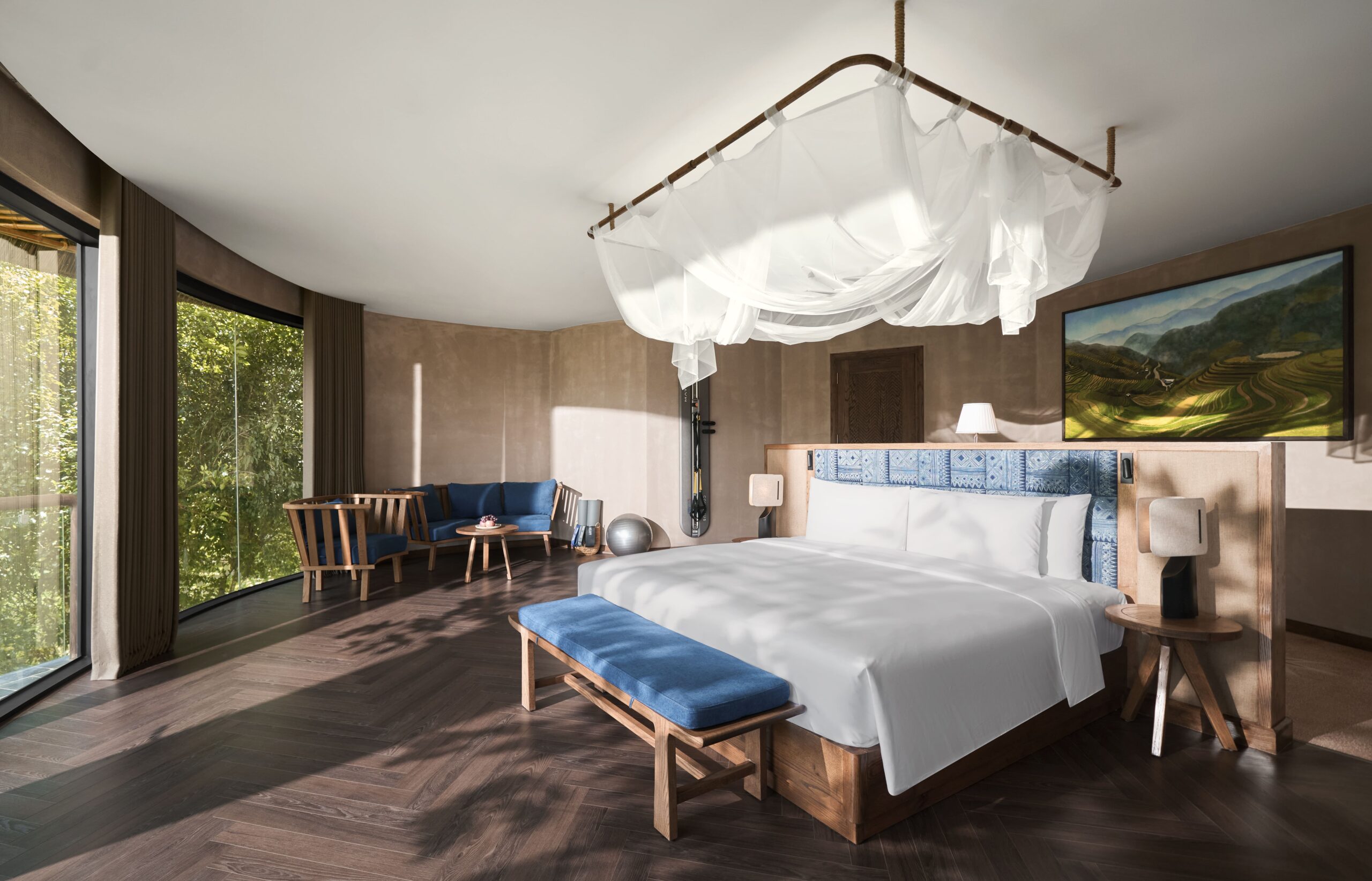 Designed for simplified living, the resort embodies a harmonious blend of nature and culture. Bamboo — a cultural symbol of the Vietnamese people and holder of a world record for the largest bamboo architecture — is interwoven with brocade motifs inspired by traditional Hmong textiles. Together, these elements create an atmosphere of understated luxury, modernity, and minimalist sophistication.
