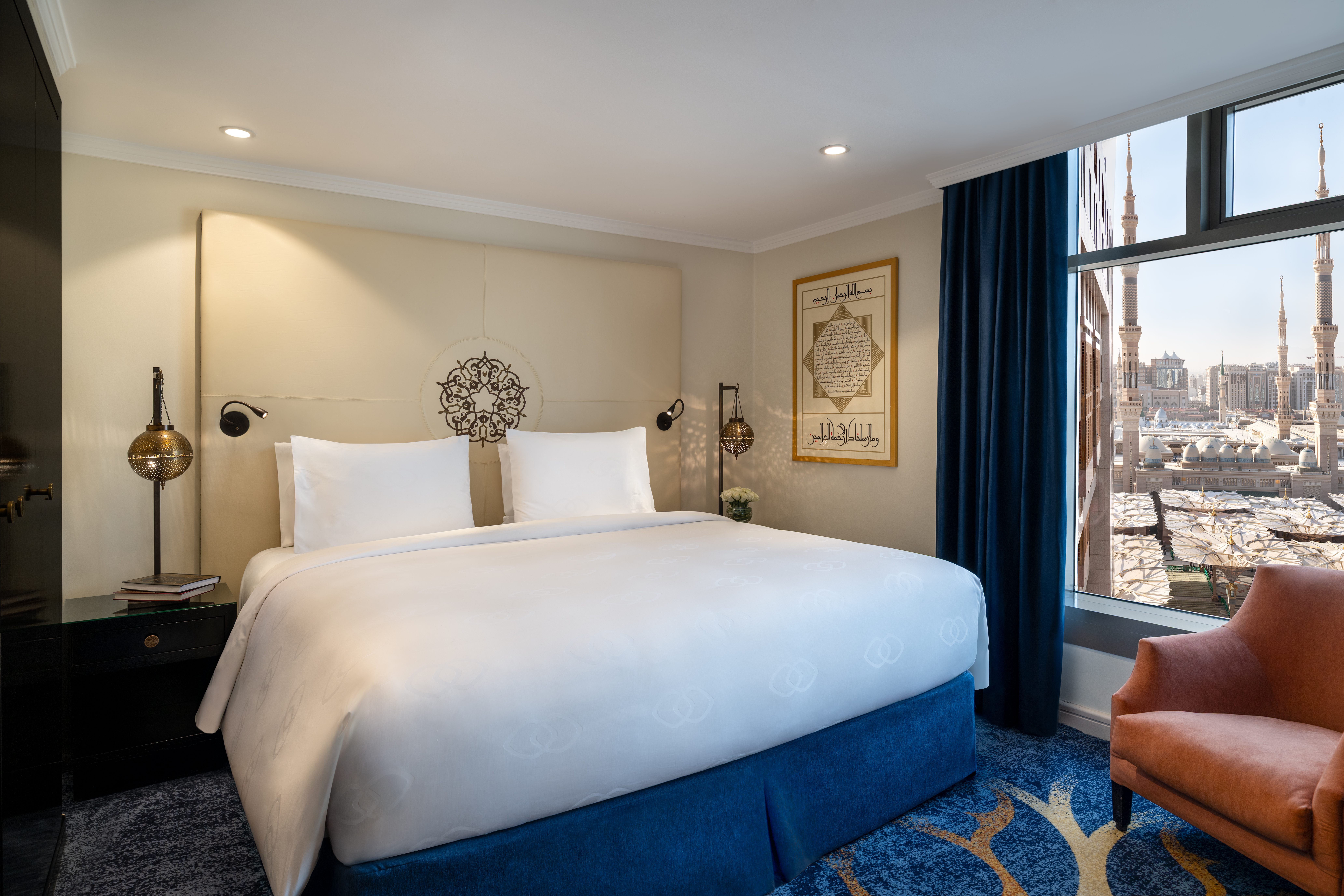 This serene oasis offers elegantly appointed rooms and suites, many boasting stunning views of the Prophet's Mosque. Guests can Savor world-class cuisine at Arabesque Restaurant, relax at Shahd Café, or enjoy exclusive luxury at Al Merkaz Lounge.