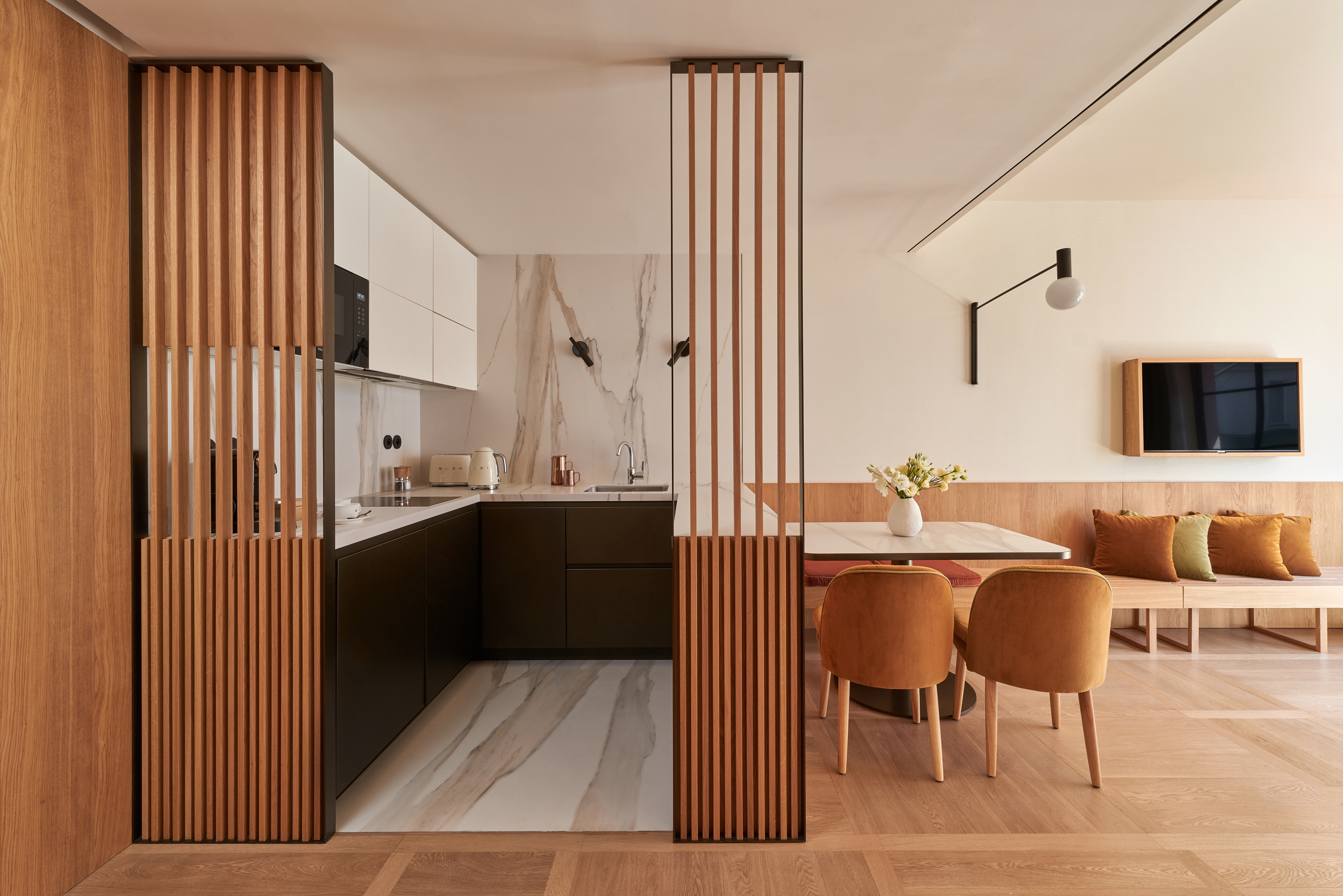 It is a place where European elegance meets contemporary ease. Its calm, sun-lit suites offer generous space, fully equipped kitchens and thoughtful details that make every stay feel intuitive and relaxed.