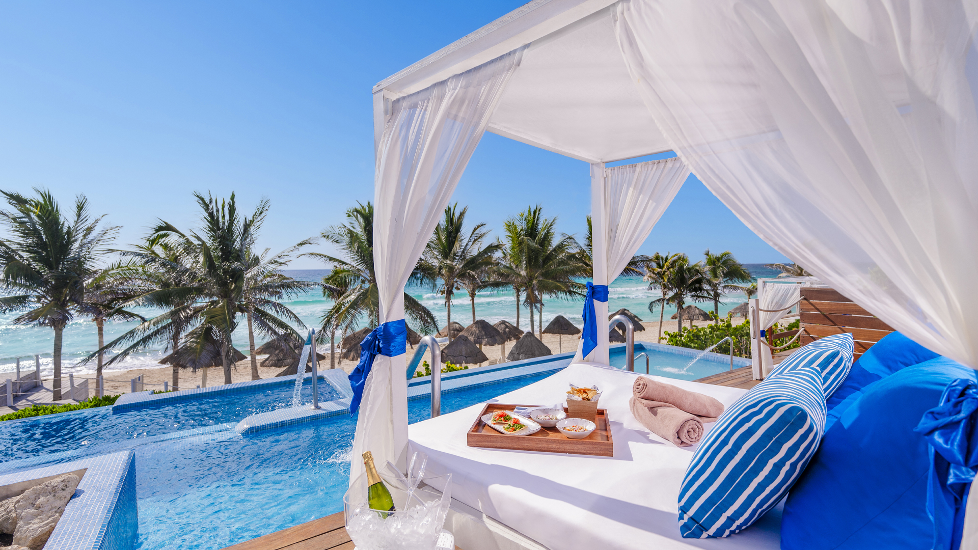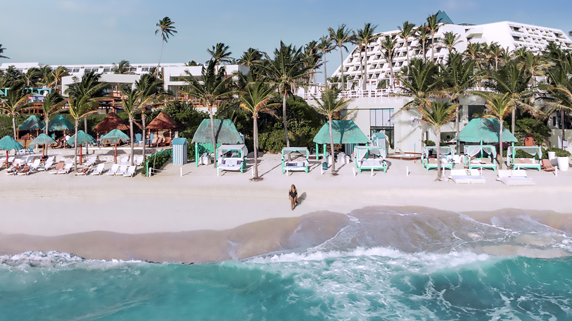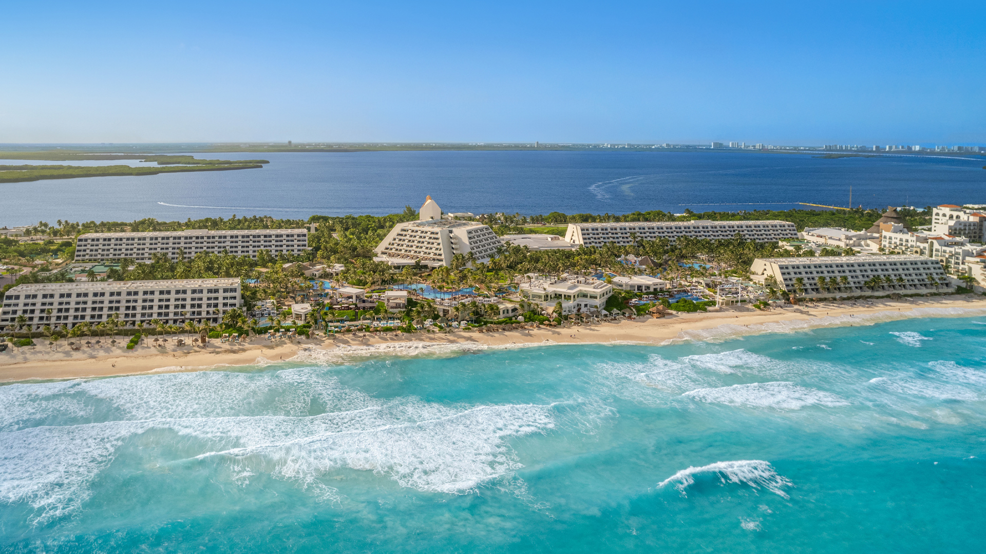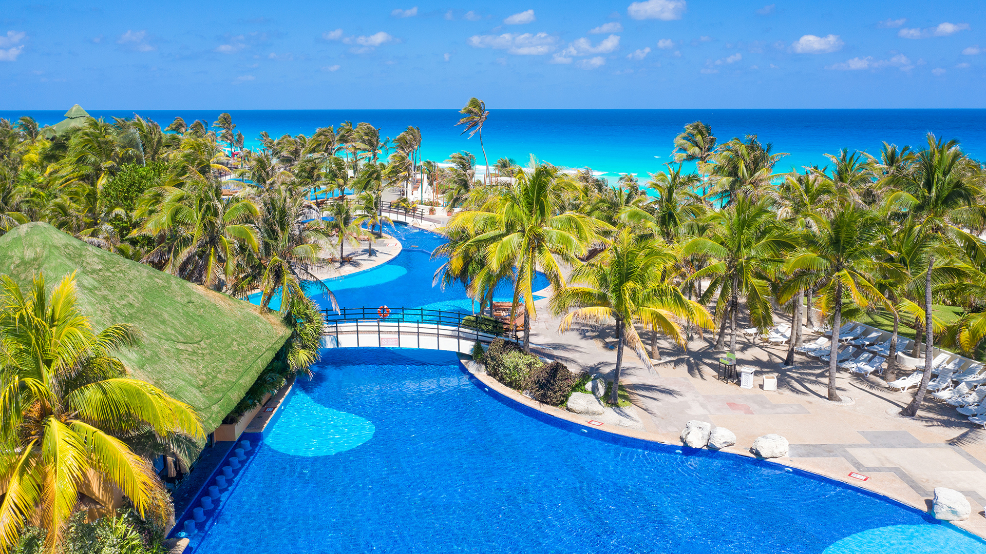 The resort offers privileged oceanfront locations, an extensive white-sand beach, and a spectacular 1,312-foot-long swimming pool that meanders throughout the property, allowing you to cool off while admiring the turquoise ocean—everything you need for an unforgettable Cancun vacation.