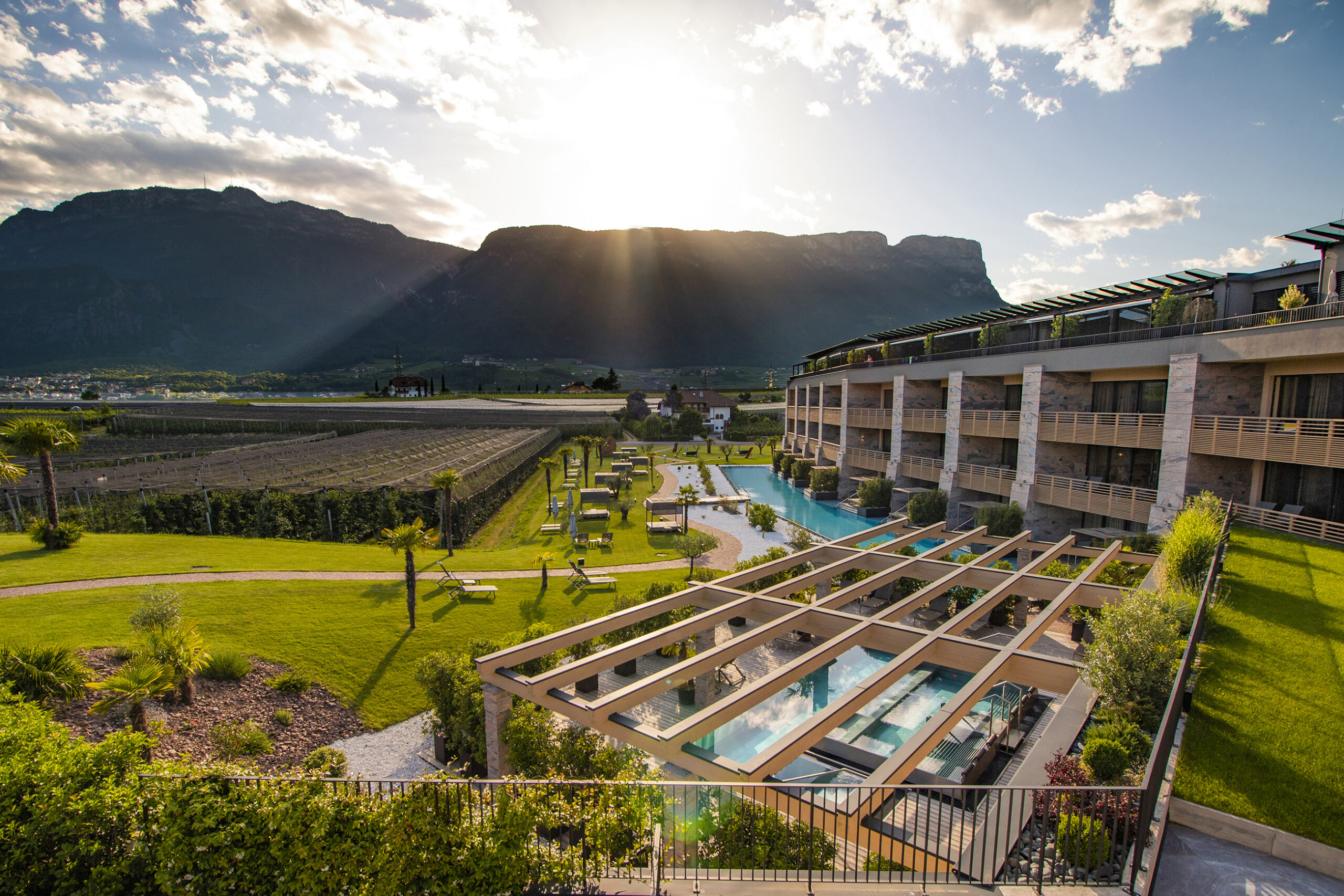 Surrounded by sun-drenched vineyards and overlooking the majestic mountains of South Tyrol, Weinegg Wellviva Resort combines alpine tranquillity with Mediterranean lightness. The exclusive private spaSUITES invite you to unwind in light-filled spaces featuring private saunas and elegant design, offering moments of pure privacy and relaxation.