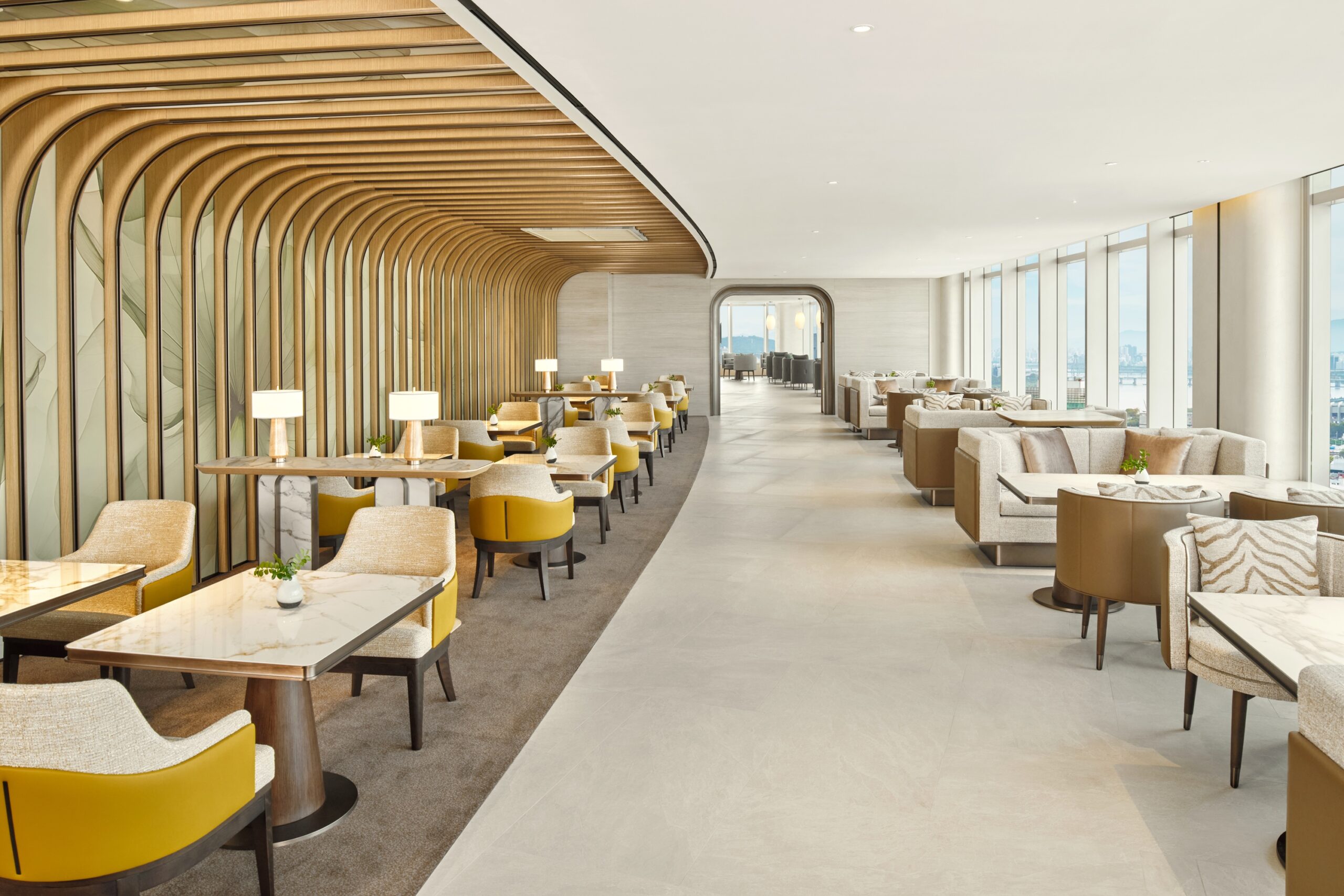The hotel features 564 guestrooms across eight room types tailored to various travel purposes, including six suite categories such as the spacious Presidential Suite with a private bar and fitness room, and Corner Suites offering panoramic views of the Gangnam skyline and Bongeunsa Temple. Modern design and efficient layouts define all guestrooms.