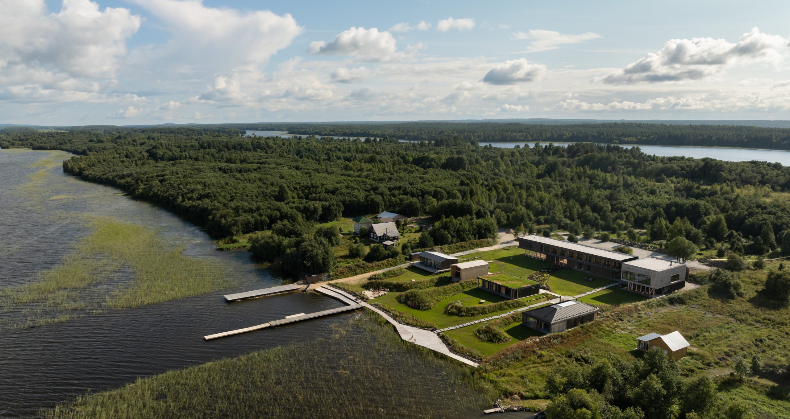 Nestled in protected Karelia in Northern Russia, among hundreds of lakes and endless northern forests, stands the boutique hotel “Zaonezhie”. Its modernist architecture, delicately integrated into the landscape, has earned recognition from leading architectural awards both in Russia and internationally. The hotel received top honours at the LIV Hospitality Design Awards (Switzerland), winning in both the Wellness and Boutique Hotel categories. It also received Silver in the Commercial Architecture category at the International Design Awards (USA).