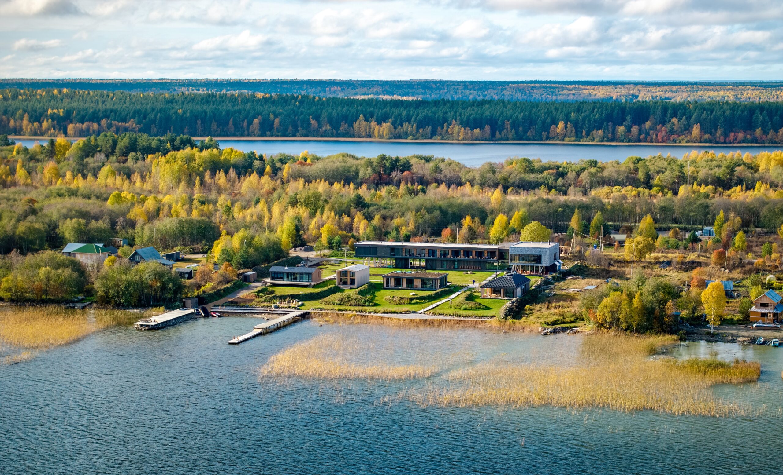 Thirteen panoramic rooms and four guest villas with wood-burning fireplaces create an atmosphere of privacy and calm, while the “Runa” restaurant offers author-driven cuisine based on local ingredients — from freshly caught fish to fowl and northern berries. The hotel is designed for unhurried living: a private pier, a panoramic hall, eco-trails, and secluded spots for meditation in the forest.