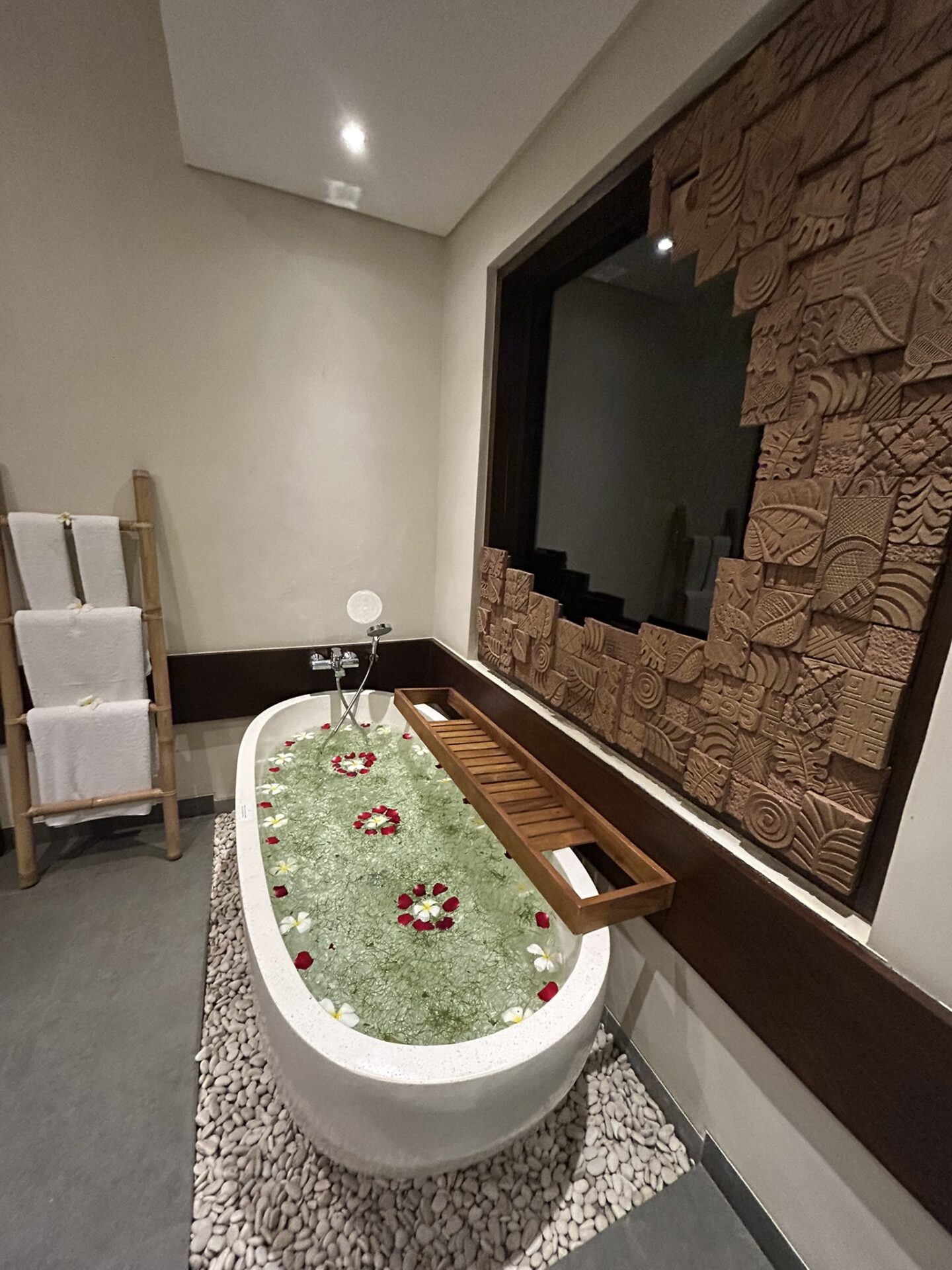 Despite the rain, we made the most of our stay. One of my favorite experiences was a Balinese massage in the couples’ spa room, where my therapist, Ketut, was incredibly sweet and attentive. It was the perfect indulgence, and the serene ambiance of the spa made it even more relaxing. We also loved the yoga shala, where guests can enjoy morning sessions amidst the lush surroundings—a calming way to start the day.